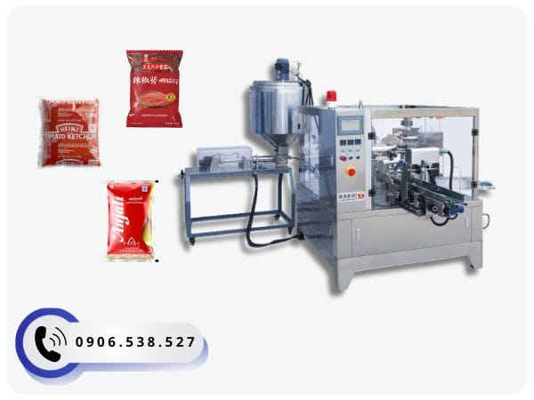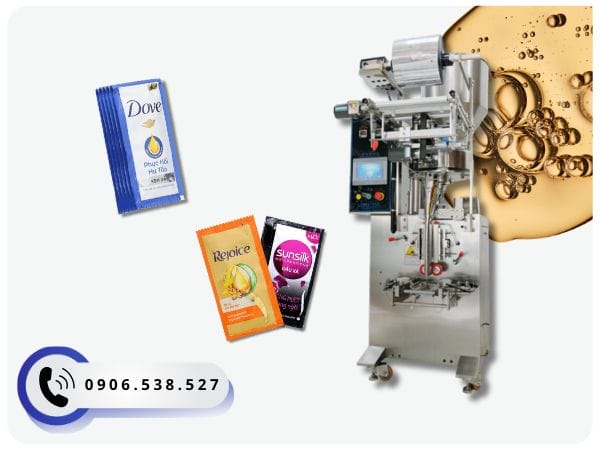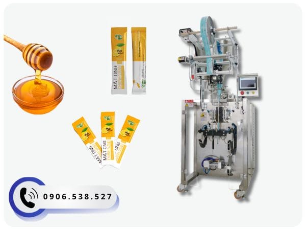 Đây là loại máy có thể đóng gói hầu hết các loại thực phẩm dạng lỏng như tương ớt, mật ong, đóng gói dầu gội, sữa tắm… Khi đóng gói dạng lỏng cần đảm bảo bao gói phải tốt, đóng gói và ép chắc chắn để chất lỏng không bị rỉ ra trong quá trình bảo quản và sử dụng. Ngoài ra, thực phẩm dạng lỏng cũng cần định lượng vừa phải để hạn chế dư thừa khi sử dụng và tiện lợi khi xé túi